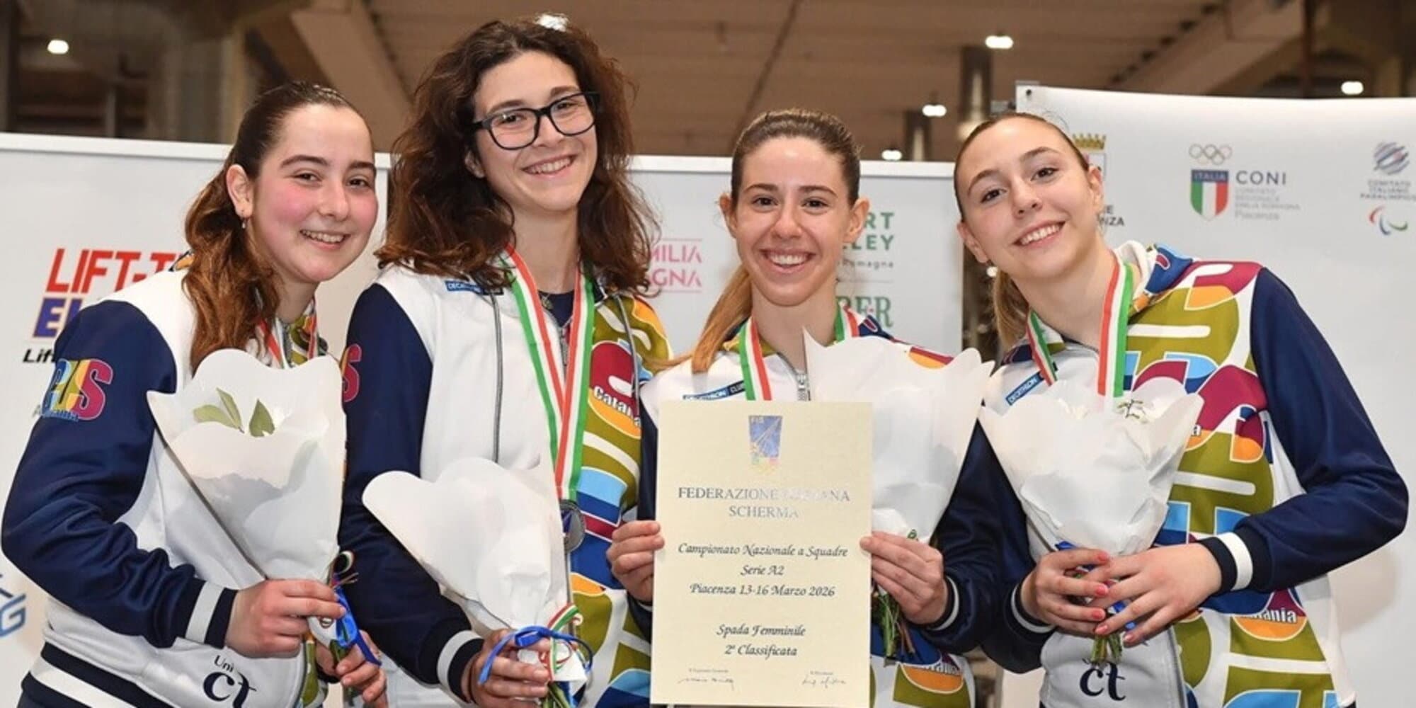 Il ‘Dream team’ etneo formato da Caterina Auteri, Maria Roberta Casale, Elena Maria Pennisi e Eleonora Santonocito ha scritto la storia schermistica cusina del nuovo millennio, aggiungendo una nuova pagina ai capitoli dedicati alla spada maschile (per tantissimi anni in A1). Un traguardo che è stato raggiunto grazie alla medaglia d’argento conquistata a Piacenza nei Campionati italiani a squadre, dove le ragazze del Cus Catania si sono arrese solamente all’ultima stoccata nella finale contro la Ginnastica Victoria Torino (39-40).