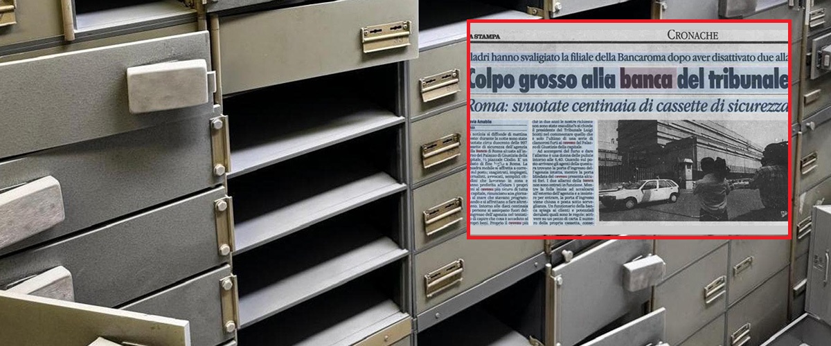 Nel 1999, a Roma, una clamorosa rapina al caveau della banca di Roma di piazzale Clodio destò enorme interesse. Il “furto del secolo”, come venne definito, avvenne nella notte tra il 16 e il 17 luglio 1999, all’interno del caveau della filiale 91 della banca interna al Tribunale di Roma, nella cittadella giudiziaria tra Monte Mario e Piazzale Clodio: furono trafugate 147 delle 990 cassette di sicurezza, di proprietà di figure di spicco come avvocati, magistrati e cancellieri, per una stima totale di 17 miliardi di lire e una quantità mai stabilita di documenti. Massimo Carminati, ex membro dei NAR e figura considerata vicina alla cosiddetta Banda della Magliana, venne indicato dagli inquirenti come uno degli organizzatori o comunque come figura coinvolta nell’operazione. Il caveau più sorvegliato d’Italia venne saccheggiato in tutta tranquillità: non scattò il doppio sistema di allarme, non vennero tranciati lucchetti, non venne sparato neanche un colpo di pistola. Il bottino fu enorme: decine di miliardi di lire ma quasi subito emerse l’ipotesi che non si trattasse solo di un furto “classico”.